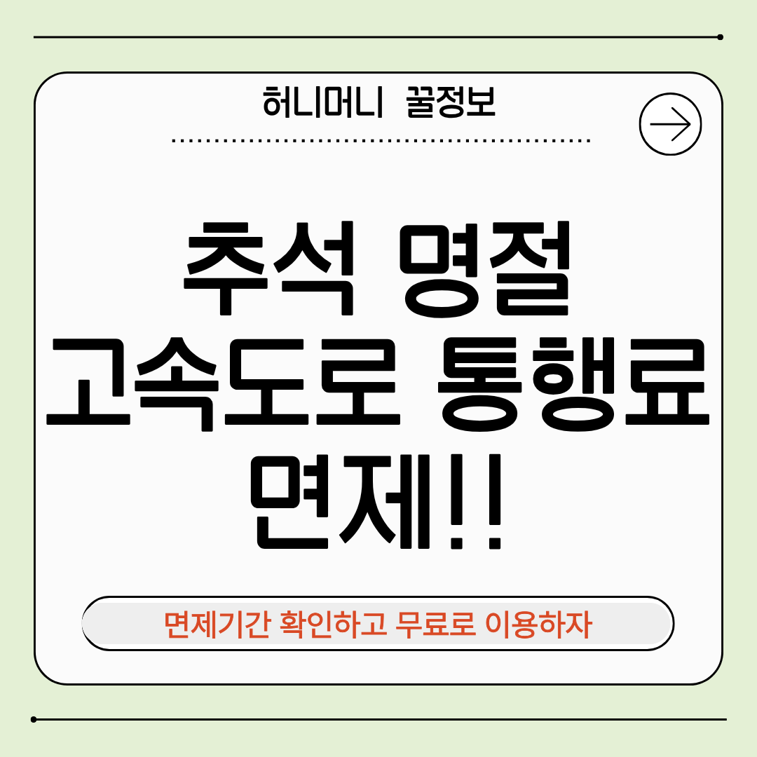 📅 9월 5일(금) 00:00 ~ 9월 7일(일) 24:00 총 3일간 통행료가 면제됩니다.